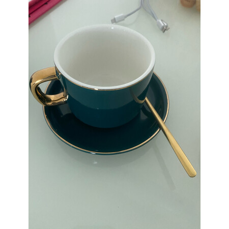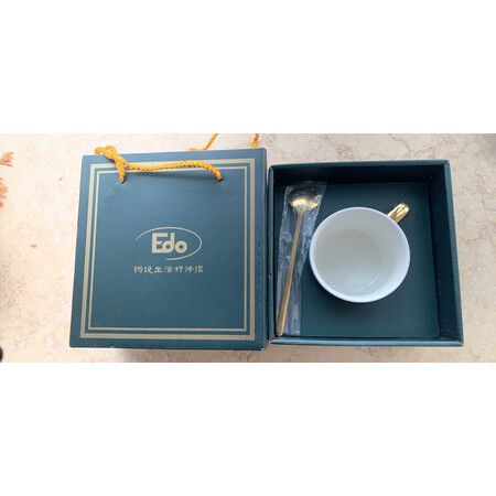 EdoTH7152挺好看的陶瓷咖啡杯,刚好还买了点黑咖啡,喝起来很有格调,绿色特别有格调。。。。。。,金色拿手点睛之笔。用段时间再追评,先继续用用看