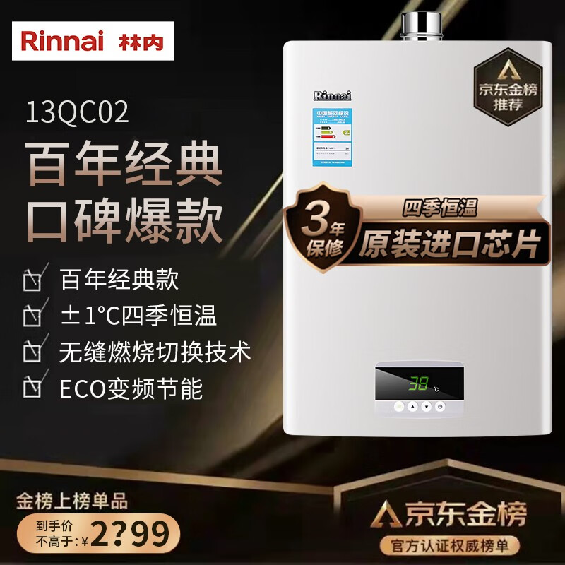 实际上这个林内13QC02的确是不错的哈产品确实不错,安装太快了早上十点收到货就联系安装师傅中午十二点过来安装太给力了。之前旧的换下来的管子全部用上了师傅说可以用不需要买配件了。没有收其它乱七八糟附加费用,声音很小,出水快,智能操作方便,很棒,支持林内13QC02